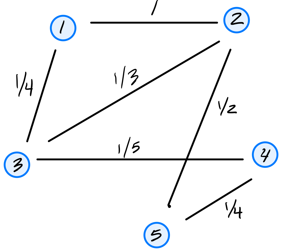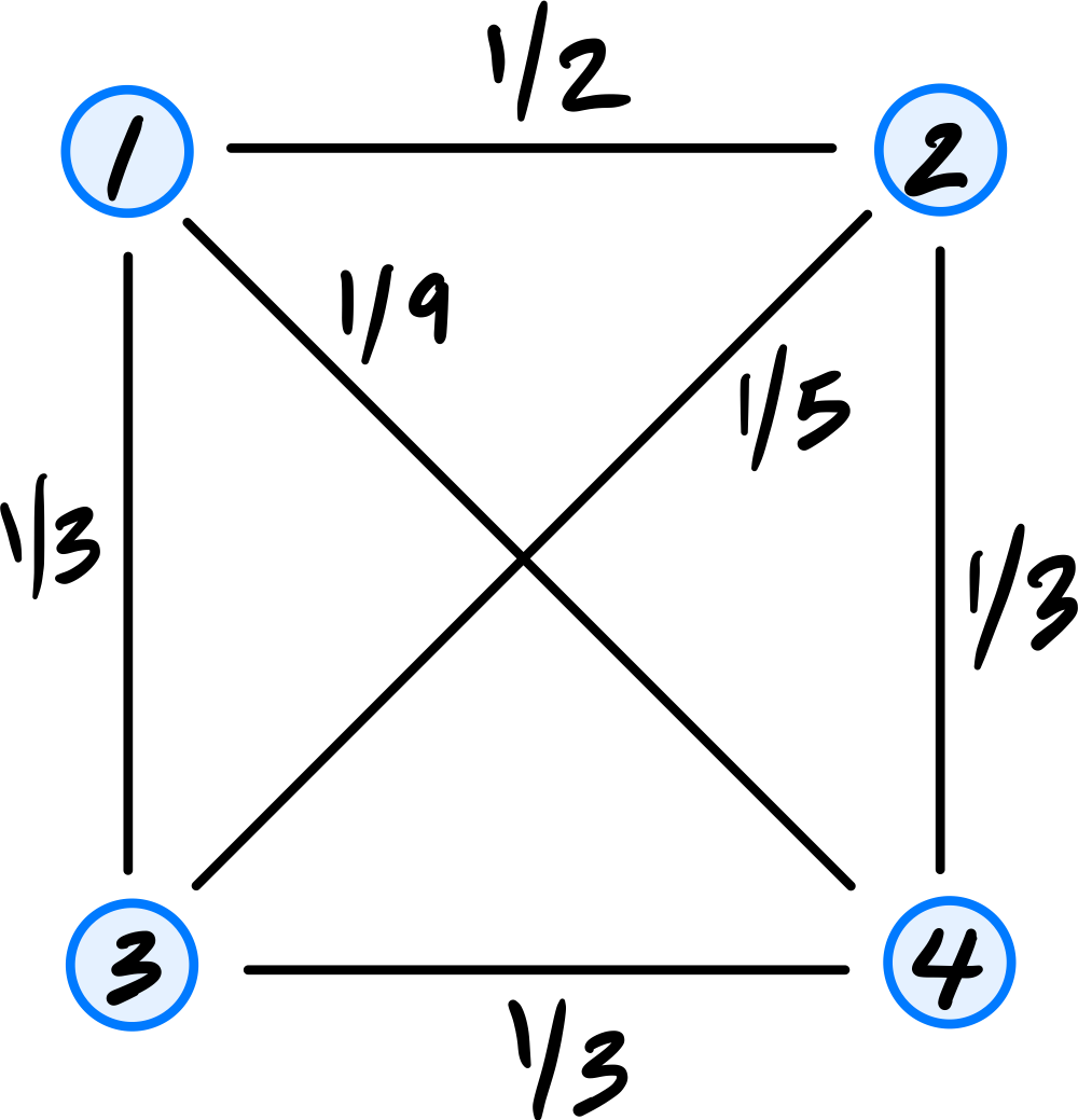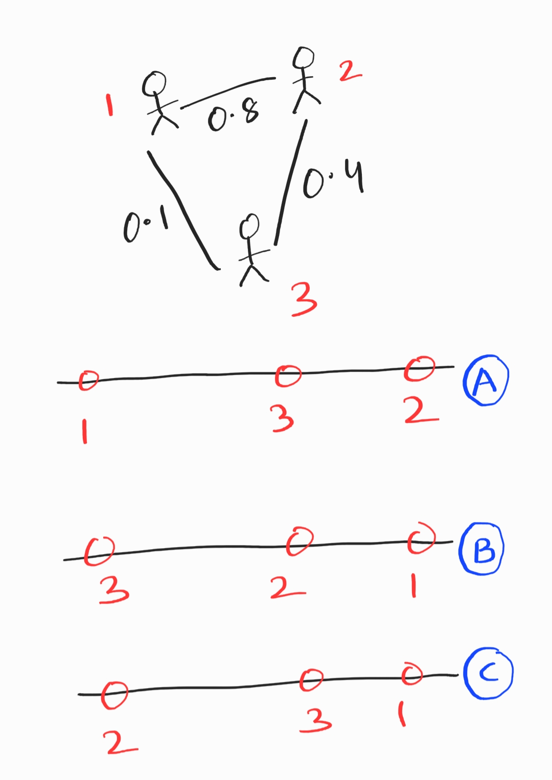 Consider a weighted graph of similarity between 3 users. Edges determine the level of similarity between two users (0: least similar, 1: most similar).