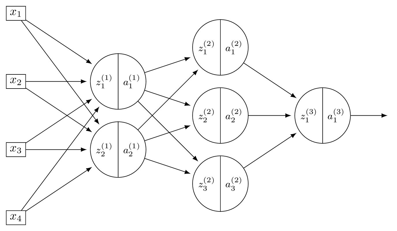 Consider a neural network \(H(\vec x)\) shown below: